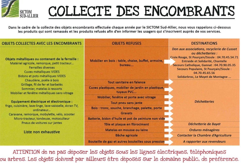 Le ramassage des encombrants et des épaves automobiles est prévu :